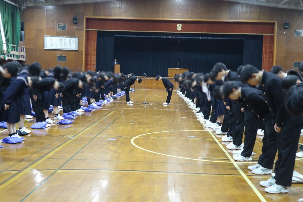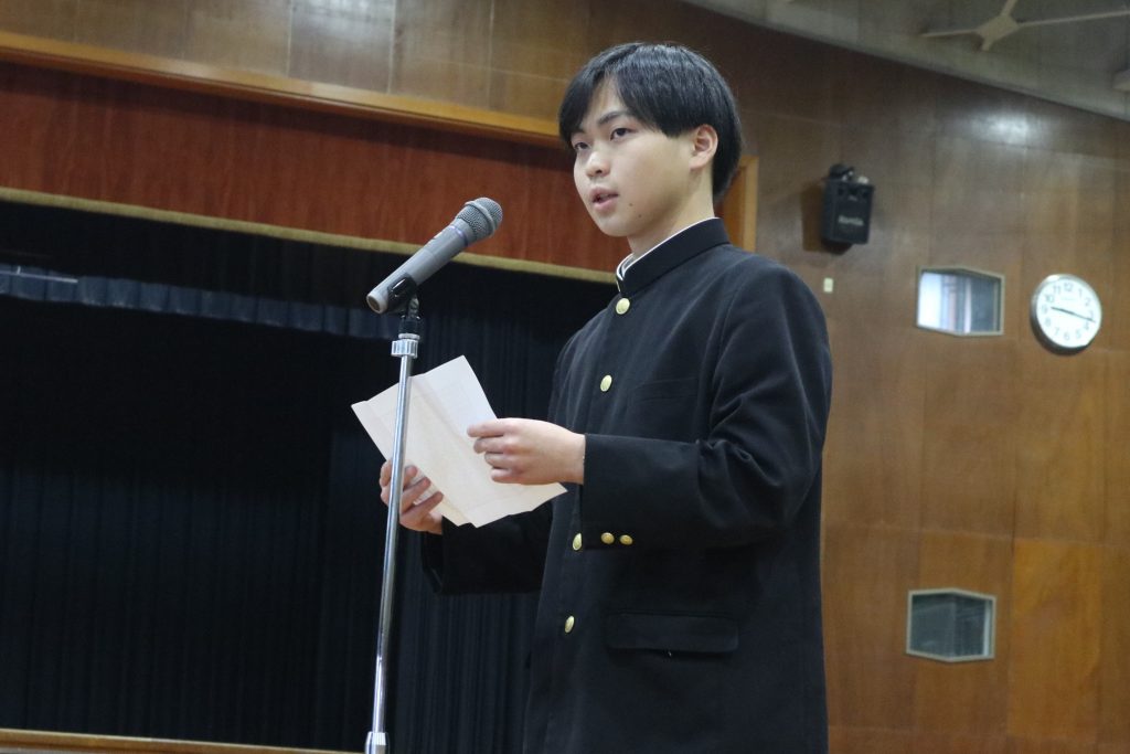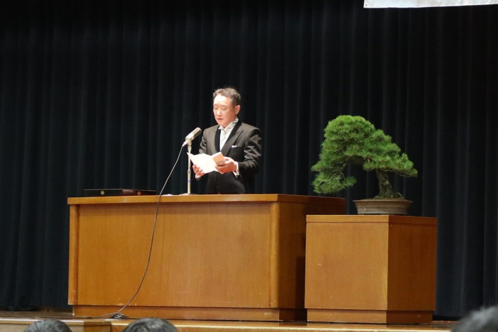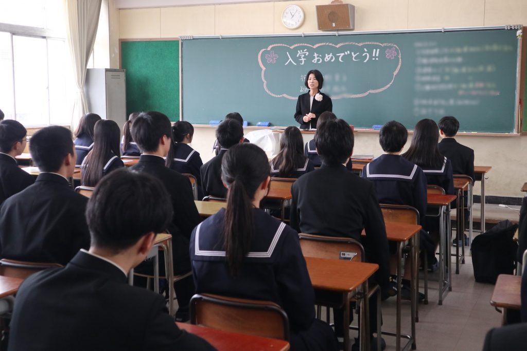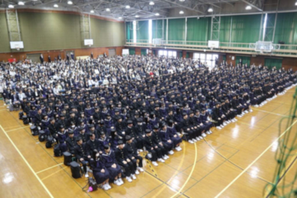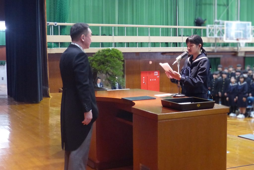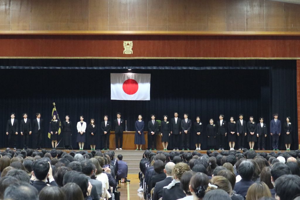 学校生活/年間行事 令和8年度 入学式・対面式 2026年4月7日 4月6日(月)満開の桜の中、320名の新入生を迎え令和8年度入学式を挙行しました。今年度は附属中学校も開校し、70名の中学校新入生も一緒に参加しました。翌日には前期始業式を行い、総勢1109名の新たな1年が始まりました。また始業式後の対面式では、新入生と新2・3年生があいさつと“礼”を交わしました。 入学式 正門 式場全体 校長式辞 新入生代表宣誓 第1学年団紹介 ホームルーム 対面式 上級生代表あいさつ 新入生代表あいさつ “礼”